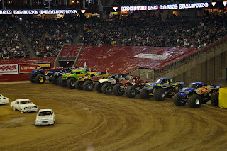 Lot's of trucks, noise, exhaust... but tremendous fun to watch! Spike, Brutus, Mohawk, Superman, Avenger, Monster Mutt, and many more...the favorite truck of all was Grave Digger. Not holding back in the least, this truck flew through the air causing chaos, excitement, and huge applauds before coming to a rest upside down.
